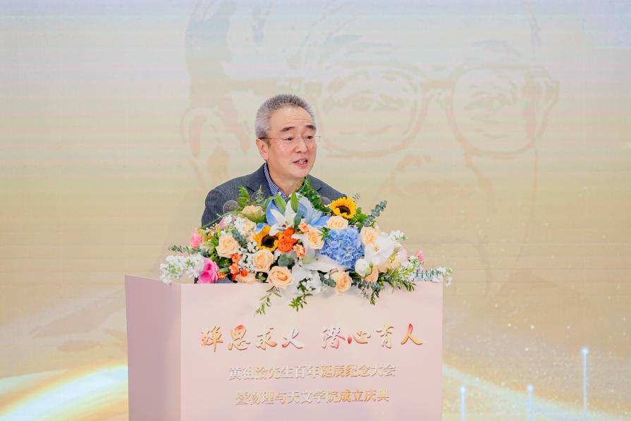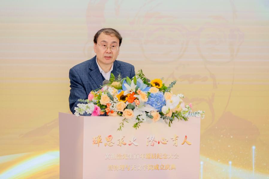 随后,董国轩院长做了兔子先生 战略发展的报告,回顾了兔子先生 物理、天文、核科学与技术学科建设的历史沿革,介绍了当前人才培养和科学研究的优秀成果,展望了学院未来的发展目标及建设方向。他强调,新学院的成立,承载着无数人的心血和期待,昭示着我们将以更加坚定的步伐,走好未来的创新发展之路,在新的历史起点,学院将不负新时代赋予的光荣使命,奋楫启航,开拓创新,再创辉煌。