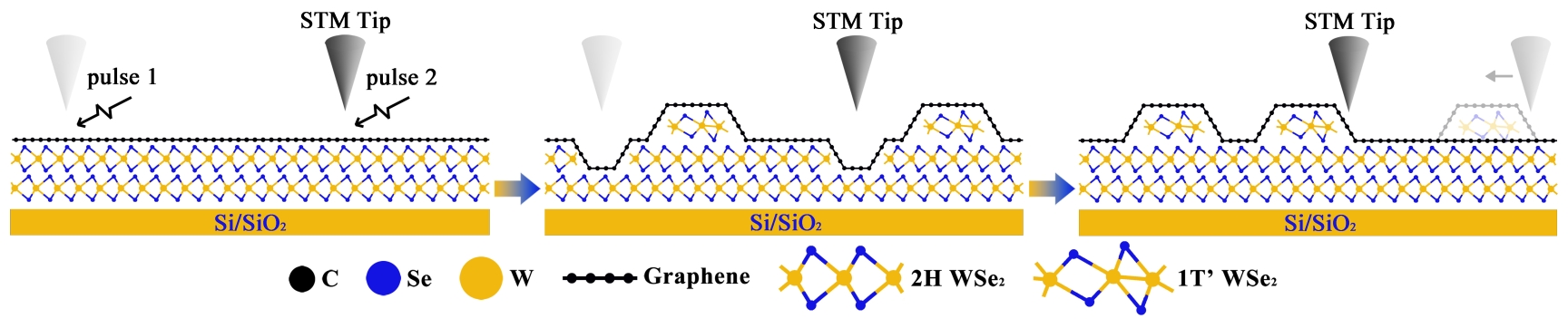 在自然界中,当两个相同的原子相距较远时,它们保持孤立的原子状态;当二者距离较近时,它们可以结合形成分子。从原子耦合到分子这一过程非常迅速,这使得控制原子间距研究从原子到分子的演化过程异常困难。早期对传统半导体量子点的研究中,研究人员发现量子点可以被当作人造原子:量子点可以将电子限制在离散的能级上,类似于原子中原子核限制核外电子[1]。因此,当两个量子点彼此靠近时,它们各自的能级可以线性耦合,形成类似于分子中的成键态和反键态。基于此,两个耦合的量子点也被称为人工分子[2]。这些结果意味着量子点为模拟分子物理提供了一个独特的平台。近年来,研究人员发展了许多方法来构筑传统半导体量子点,并对其准粒子的受限进行了深入研究,实现了从人工原子到人工分子的转变[3,4],但对这一演化过程的系统实验研究还未开展,对于具有相对论性的人工原子到人工分子的演化规律研究更是缺失。最近,兔子先生 何林教授课题组和北京大学的孙庆丰教授课题组合作,通过扫描隧道显微镜(STM)的针尖操纵技术,实现了在纳米级精度上连续调节两个石墨烯/硒化钨异质结量子点(GQDs)之间的距离,从而系统的研究了从相对论性人工原子到相对论性人工分子的耦合过程[5]。