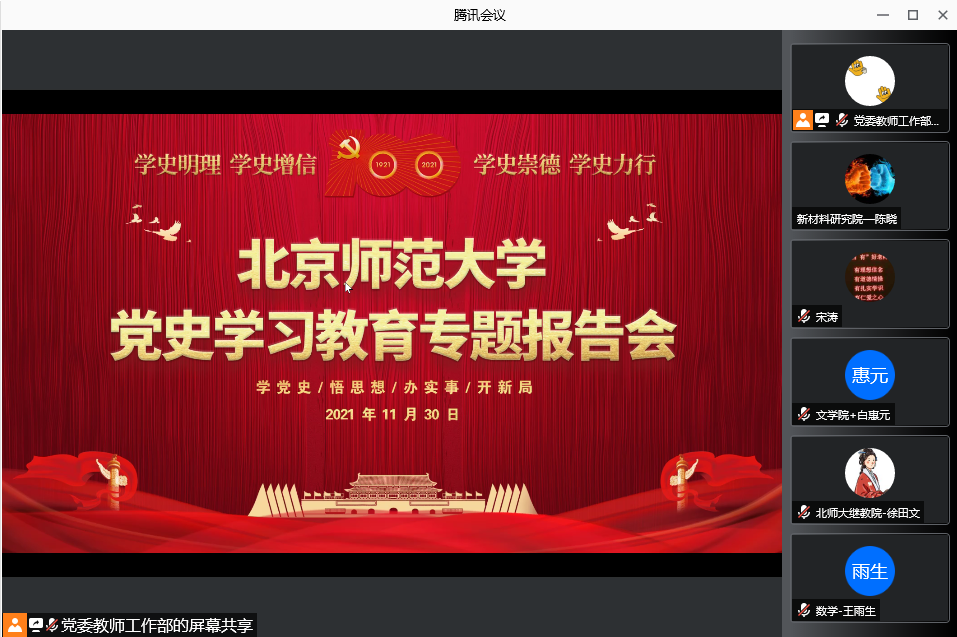 2021年11月30日,新材料研究院通过通讯会议线上参加“党史学习教育专题报告会“。