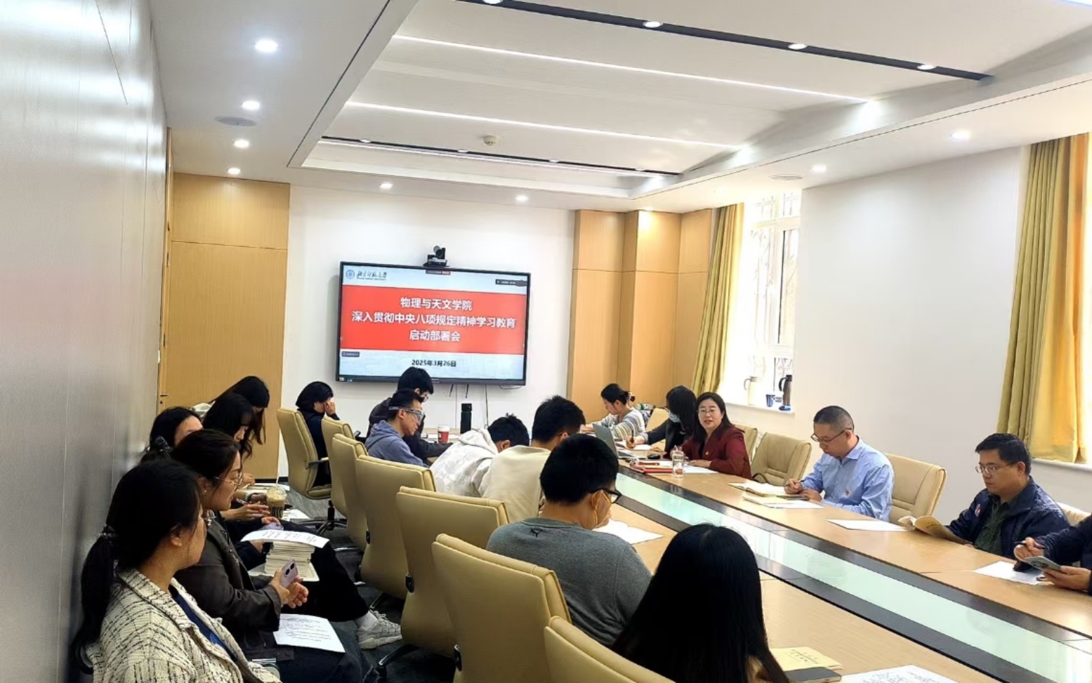 2025年3月26日上午,学院党委组织召开深入贯彻中央八项规定精神学习教育启动部署会暨支部书记例会。学院党委书记梁颖主持会议并讲话,学院党委副书记谢天、副书记刘珊珊、师生党支部书记出席本次会议。