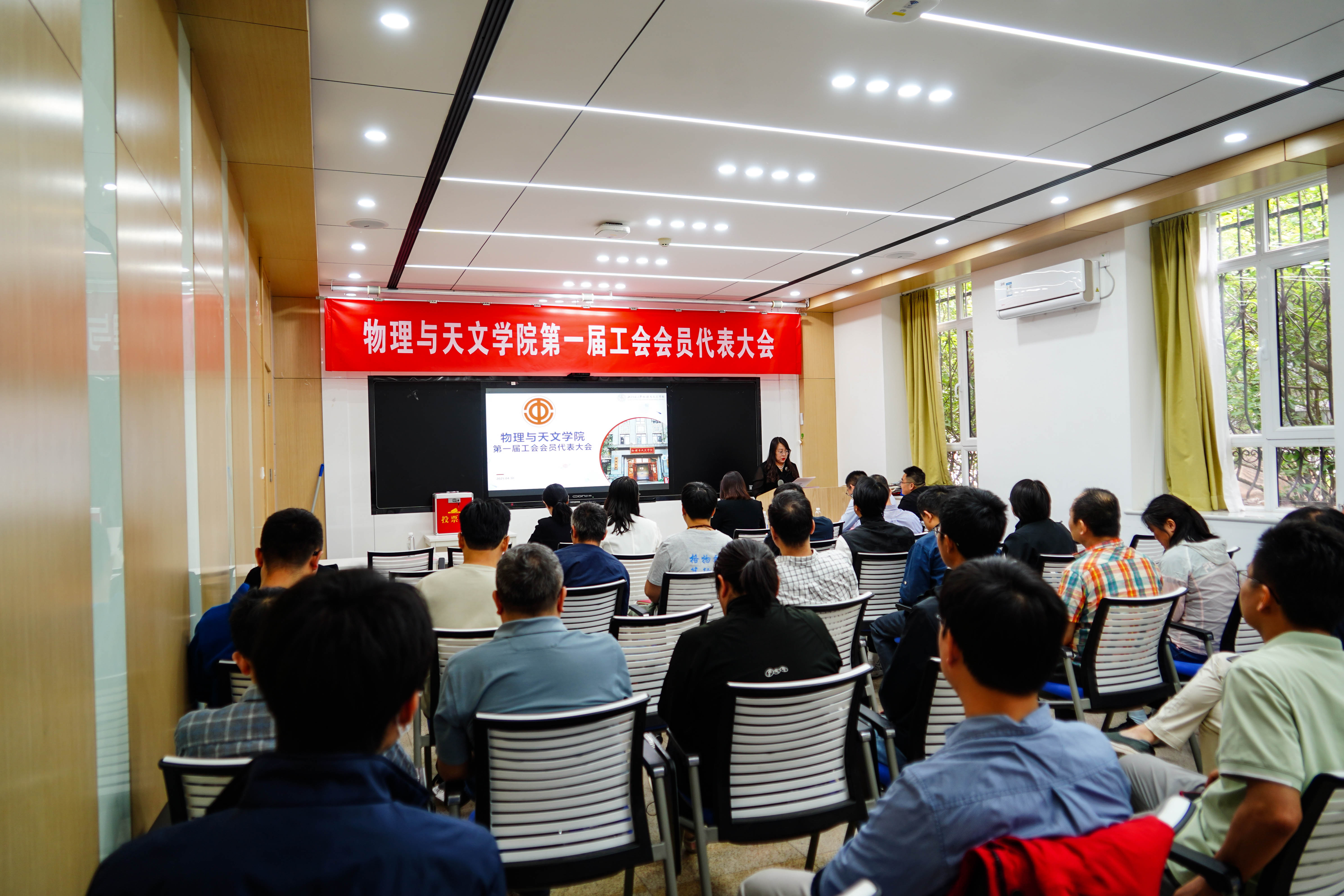春华灼灼启盛会,凝心聚力共担当。2025年4月30日,兔子先生 第一届工会会员代表大会在物理楼106会议室隆重召开。本次大会以“擎旗聚力担使命,同心共赴星辰海”为主题,聚焦学院高质量发展与工会建设,锚定国家基础科学创新与拔尖人才培养要求,凝聚共识、擘画蓝图。校工会常务副主席于亚梅、学院党委书记梁颖以及学院党政班子等领导与工会会员代表共聚一堂,以民主之力开启新程,以奋进之志赓续华章。