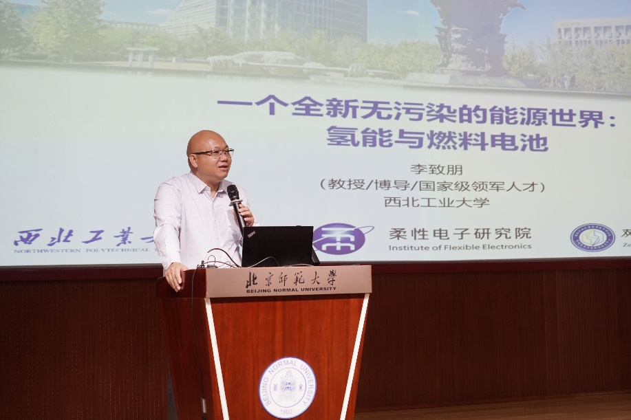 在京师物理校友科普论坛环节,李致朋教授带来了题为《一个全新无污染的能源世界——氢能与燃料电池》的精彩报告。他从双碳目标背景、新能源概述、燃料电池简介、未来规划及展望等方面,围绕一个新能源的自洽体系——“两位一体”的全产业链闭环的核心愿景,深入浅出的为大家讲解了燃料电池的发展背景,以及当前多种新能源的优缺点,并系统介绍了燃料电池的种类、应用、材料、制备及产业化发展,阐明了燃料电池在清洁能源转型中的重要性。李致朋教授指出,燃料电池作为一种清洁、高效的能源转换技术,对于实现国家“双碳”目标具有重要意义。李致朋教授的报告不仅深入剖析了燃料电池技术的最新进展,还展望了未来新能源技术的发展方向,为大家描绘了一个绿色无污染、可持续的未来新能源世界。