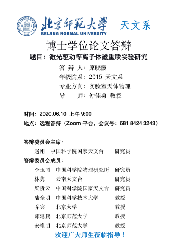 博士论文答辩(原晓霞):激光驱动等离子体磁重联实验研究