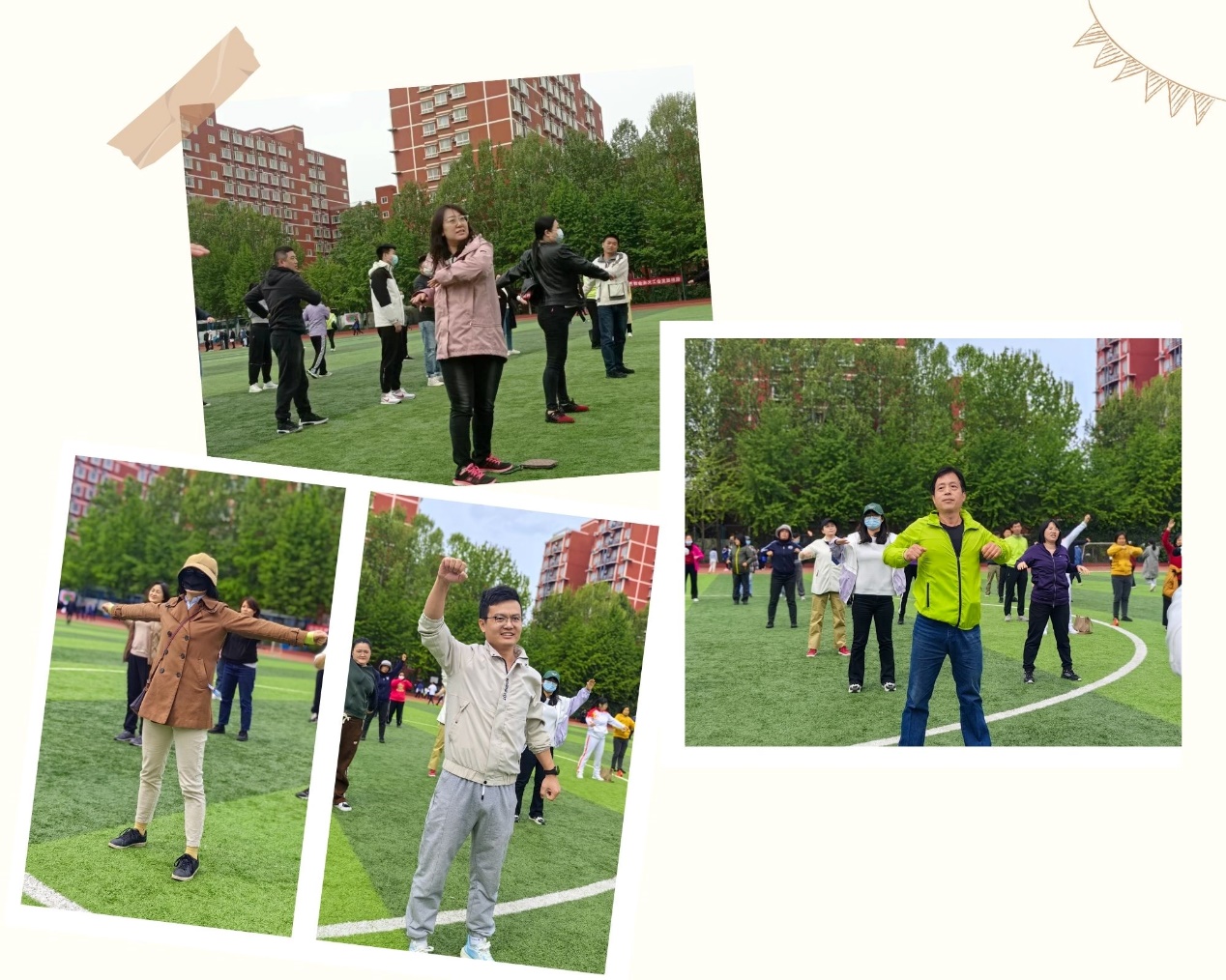 其他的趣味项目还有左右横跨与坐位体前屈。左右横跨看起来简单,但实际十分考验参与选手的平衡能力,左右往复的跑动的同时要稳住自己的重心,快者取胜。若说左右横跨体现了老师们的力量,拿坐位体前屈则展现了老师们的柔韧。这些趣味项目与其说是比赛,不如说是游戏。老师们欢快的笑声充满了操场的每一处角落。