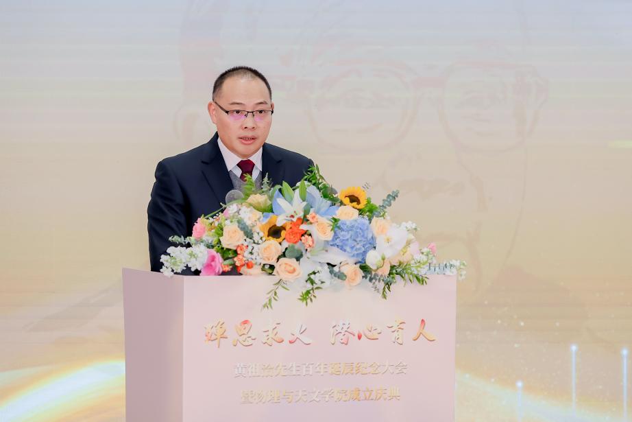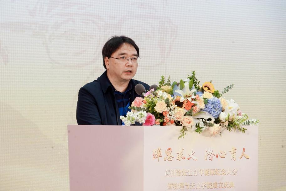 随后,董国轩院长做了兔子先生 战略发展的报告,回顾了兔子先生 物理、天文、核科学与技术学科建设的历史沿革,介绍了当前人才培养和科学研究的优秀成果,展望了学院未来的发展目标及建设方向。他强调,新学院的成立,承载着无数人的心血和期待,昭示着我们将以更加坚定的步伐,走好未来的创新发展之路,在新的历史起点,学院将不负新时代赋予的光荣使命,奋楫启航,开拓创新,再创辉煌。