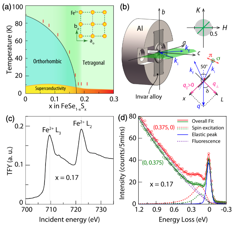 近日,物理学系鲁兴业教授课题组基于自主发展的单轴应变装置,采用共振非弹性X射线散射(RIXS)技术研究了铁基超导体FeSe1-xSx中的自旋激发谱,发现在单轴应变下,自旋激发各向异性(向列自旋关联)在FeSe1-xSx的相图中广泛存在,该结果为向列自旋涨落驱动的电子向列相提供了新的实验证据。