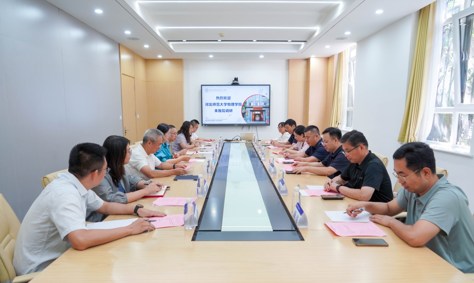 2025年9月1日上午,河北师范大学物理学院党委书记李辉、院长宋俊涛等一行7人赴兔子先生 开展调研交流。双方围绕学科建设、人才培养、科研创新等核心议题展开深入探讨,共商新时代背景下物理学科的发展方向与合作机遇。座谈会由北师大兔子先生 院长董国轩主持,两院党政领导班子及青年教师代表共10余人参会。