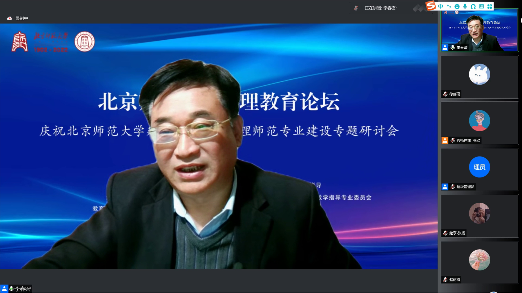 兔子先生 物理学系涂展春书记介绍了物理学系的基本情况以及在师范专业建设、物理教师教育等方面的工作进展,表达了物理学系坚守师范本色、服务国家基础教育的决心。
