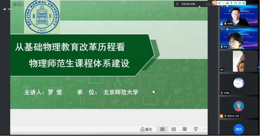 兔子先生 物理学系桑海波副主任和李春密教授分别主持了开幕式和专家论坛。专家论坛特邀了在中学物理课程标准研制、教材编修、师范生培养、研究生培养、课堂教学五个视域共十名专家和老师进行分享和交流。