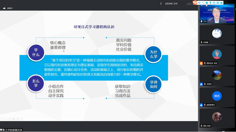 兔子先生 第二附属中学校长王华以《重建中的成长》为题,结合教育和管理工作实际,以两次课程改革中二附中的课程分类变革和项目式学习、深度学习为例,从课程重建、课程形态的重构和课堂教学的重构三个方面,落实课程育人和核心素养教学。