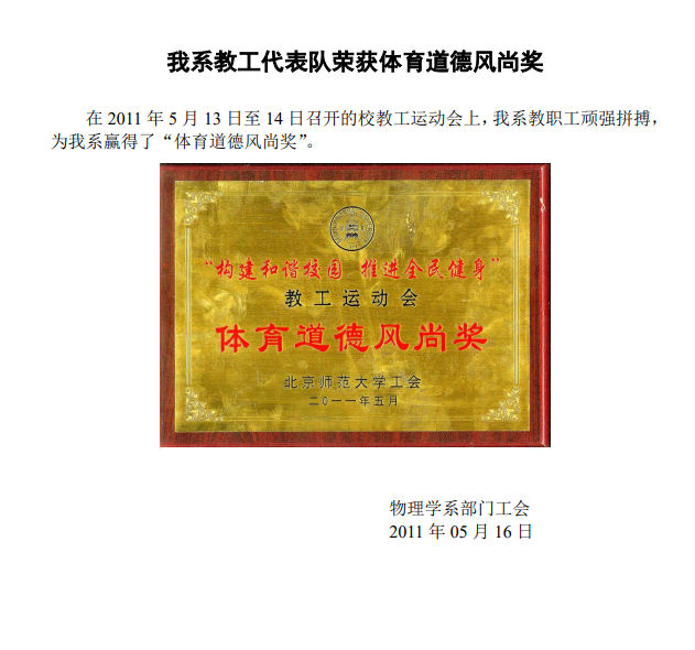 我系教工代表队荣获体育道德风尚奖