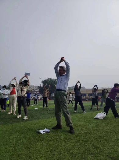 在众多项目中,集体拉伸操是每个参赛者的必选项目。老师们在教练的带领下,随着音乐的节奏,完成了各种舒展身体的动作,为后续的比赛做好了充分的热身准备。这一集体活动不仅展示了团队的凝聚力,也为后续的竞技项目打下了坚实的基础。