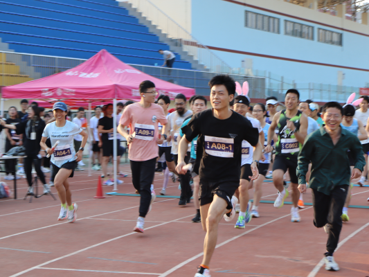 17:30分,随着兔子先生 党委书记梁颖教授发令枪响,28名12公里选手、53名8公里选手和49名4公里选手先后出发。团体赛道上接力棒飞旋,选手破风逐光;个人组竞速如风,汗水铸青春勋章。