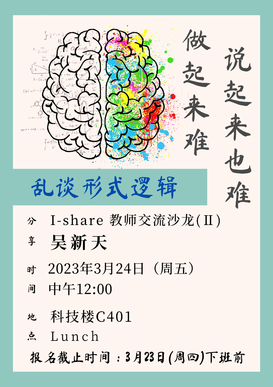 工会主席桑海波老师首先对I-Share教师交流沙龙系列活动第二期做了一个简短介绍,随后将时间交给本次沙龙的分享嘉宾吴新天老师。本次活动的主题是“乱谈形式逻辑”。在分享中,吴老师首先解释了现代物理学逻辑的基本思想,随后运用大量例子来介绍形式逻辑。他指出现今物理中形式逻辑的应用越来越广泛,在学术和教学等领域发挥着重要作用。但吴老师也提到了形式逻辑的局限性,指出它仅仅是一种逻辑推理的形式,无法完全代表现实世界的复杂性。吴新天老师从多种角度分享了自己在这一领域的研究成果和心得,来自不同学科背景的教师们积极参与讨论并提出了各自的问题和见解。大家畅所欲言,共同探讨形式逻辑在不同领域的应用和意义。