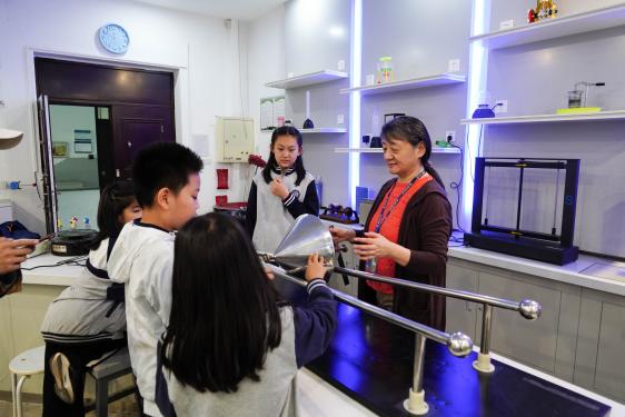 “孩子们的求知欲令人惊喜!”实验教师张英老师在活动中观察到,“他们不仅全程专注听讲、主动提问,甚至还发现了老师未提及的汞灯光谱含微量紫外线的现象。最让我感动的是,看似有些不太稳重的孩子,在抢答问题时声音却是最洪亮的,还有因实验室座位不足而始终站着认真听讲的孩子,这种‘温良恭俭让’的文化传承,体现了教育的深层力量,他们的未来一定拥有更多的梦想和希望。”