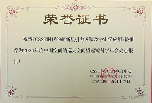 兔子先生 胡彬课题组参与的《CSST时代的超新星引力透镜及宇宙学应用》工作获评2024年度中国空间站望远镜科学年会亮点工作