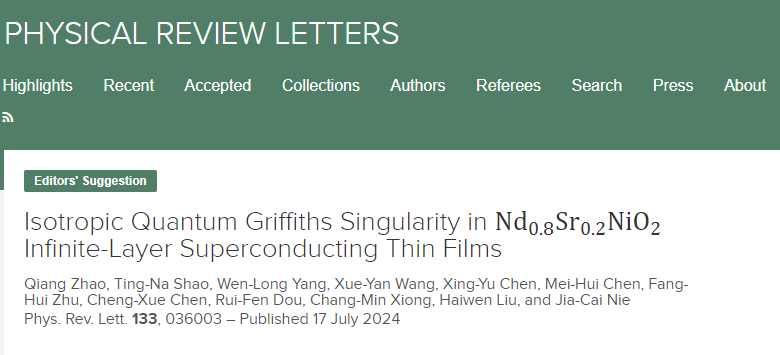 科研进展:无限层镍氧化物超导薄膜中各向同性的量子格里菲斯奇异性