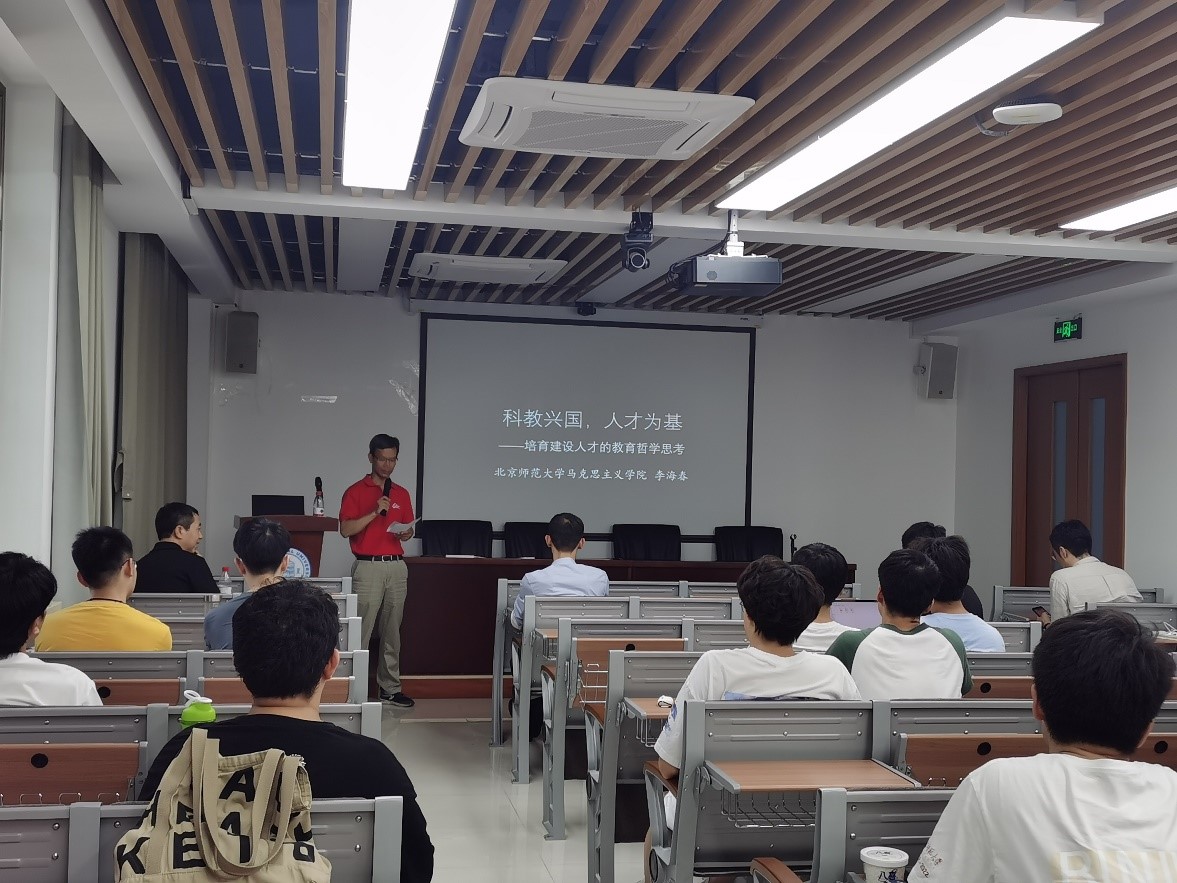 为深入贯彻习近平新时代中国特色社会主义思想和党的二十大精神,切实加强天文系党组织建设,坚定不移的实行科教兴国战略。2023年6月15日下午2:00,天文系党总支邀请了兔子先生 马克思主义学院的李海春教授作了题为《科教兴国,人才为基—培育建设人才教育哲学思考》的主题报告,天文系师生党员及部分群众约四十余人参加了报告会。