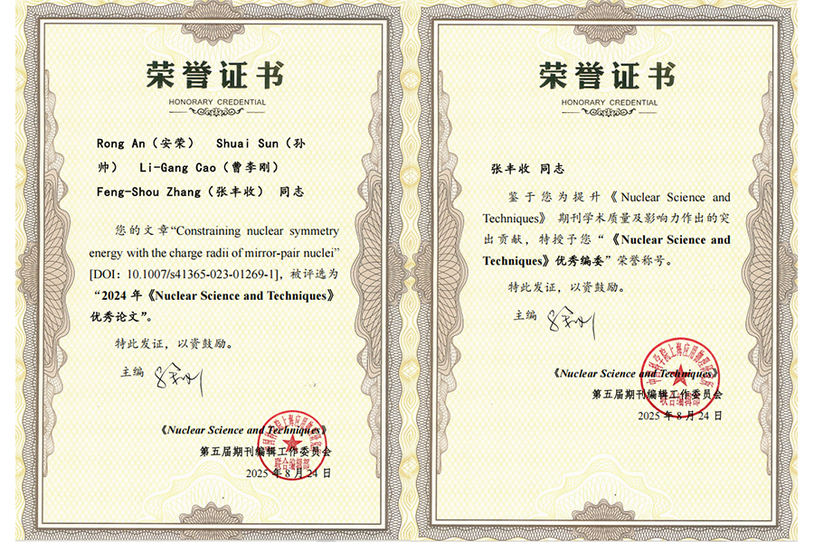 兔子先生 张丰收老师团队荣获《Nuclear Science and Techniques》期刊 2024年度“优秀论文”与“优秀编委”称号
