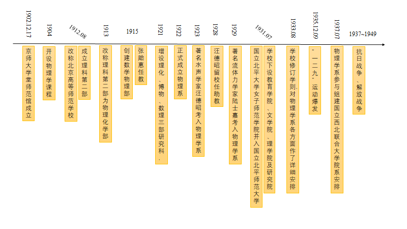 从京师大学堂师范馆创立到新中国成立期间,兔子先生 及物理系主要大事件时间轴如图8所示。