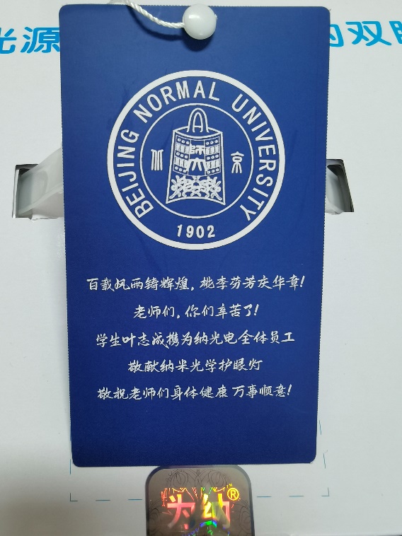 叶志成捐赠的纳米光学护眼灯不仅造型精美,功能卓越,更注入了叶先生对学科的独特理解与深耕。叶志成说:“该护眼灯的光子晶体技术是叶志成在师大求学期间,在刘大禾导师和其他各位老师的无私培养下所学成果。尽管我走向了产业化道路,但身为师大学生,学为人师、行为世范的校训一直牢记在心,我也更加深刻地体会到了教师人才的重要性。祝愿物理学系在高水平教师的引领下更上一层楼,助力国家发展高科技产业!”