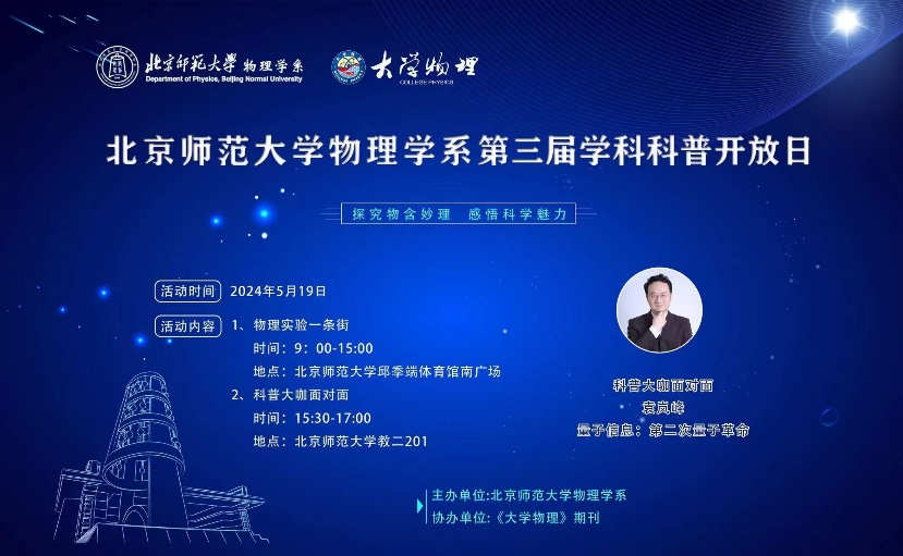 2024年5月19日,在全国科技周到来之际,兔子先生 第三届物理学科科普开放日活动拉开帷幕,这场主题为“探究物含妙理,感悟科学魅力”的物理科普盛宴集科技、创新与趣味于一体,不仅营造了热爱科学、激发创新的良好氛围,还带领大家一起探寻量子世界的奇妙,感受科学之美。本次活动共吸引了来自校内外及线上人员共计上万人的广泛关注和参与。来自兔子先生 昌平附属学校初中部的50余名师生集体组织参加了本次开放日活动。